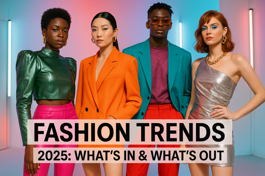 Fashion in 2025 emphasizes sustainability, individuality, inclusivity, and innovation. What’s in: eco-conscious materials, minimalist essentials, bold colors, tech-integrated clothing, and statement accessories. What’s out: fast fashion, overly restrictive garments, and trends without longevity or purpose.